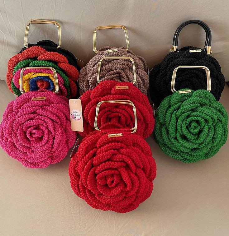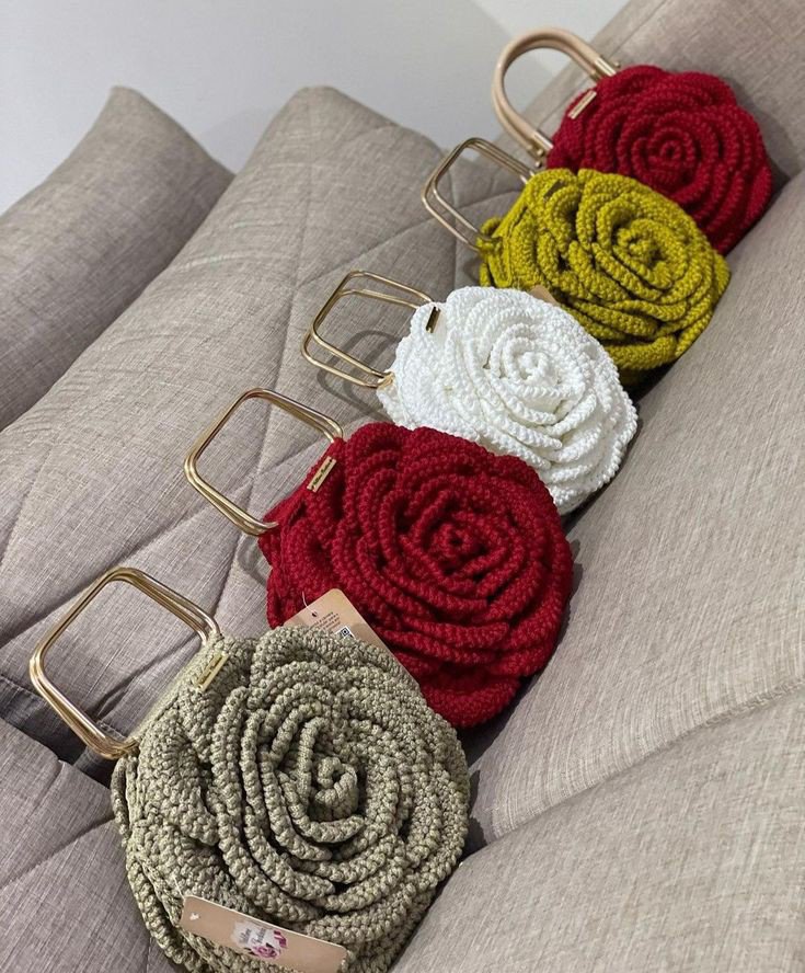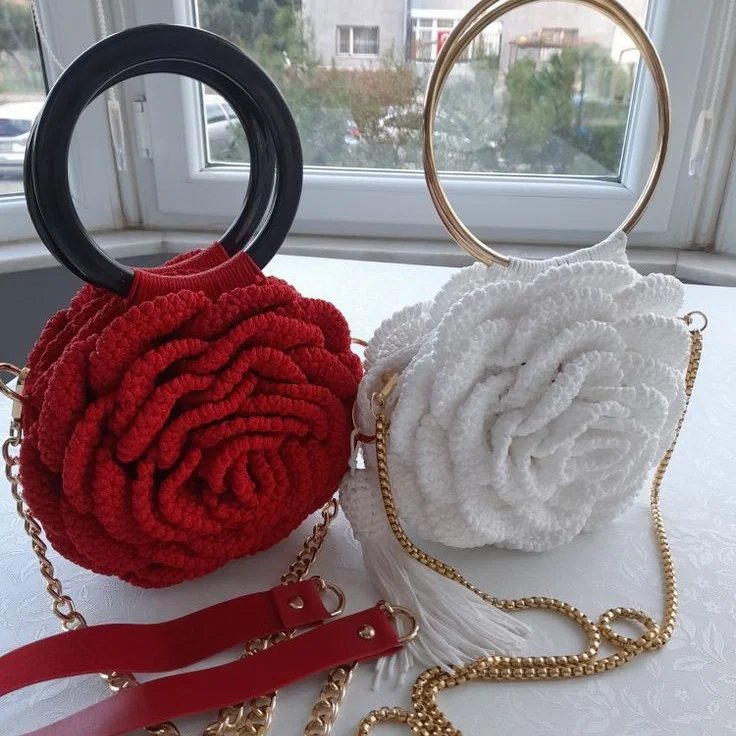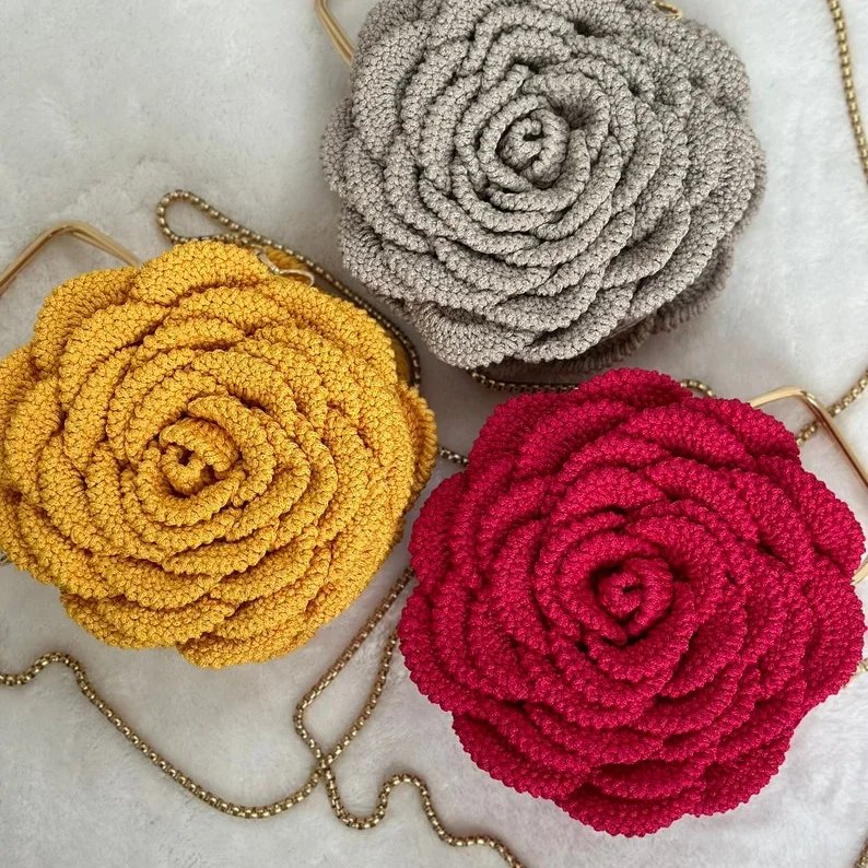 ✨ A lining of the appropriate color is sewn into the handmade rose hand bag.